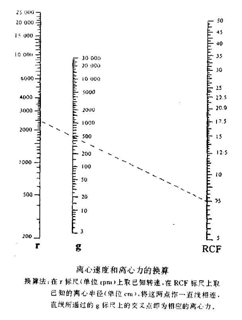 RPM(revolution per minute)為離心機(jī)每分鐘的轉(zhuǎn)數(shù);RCF(relative centrifugal field)為相對離心場,以重力加速度g(980.66cm/s2)的倍數(shù)來表示。